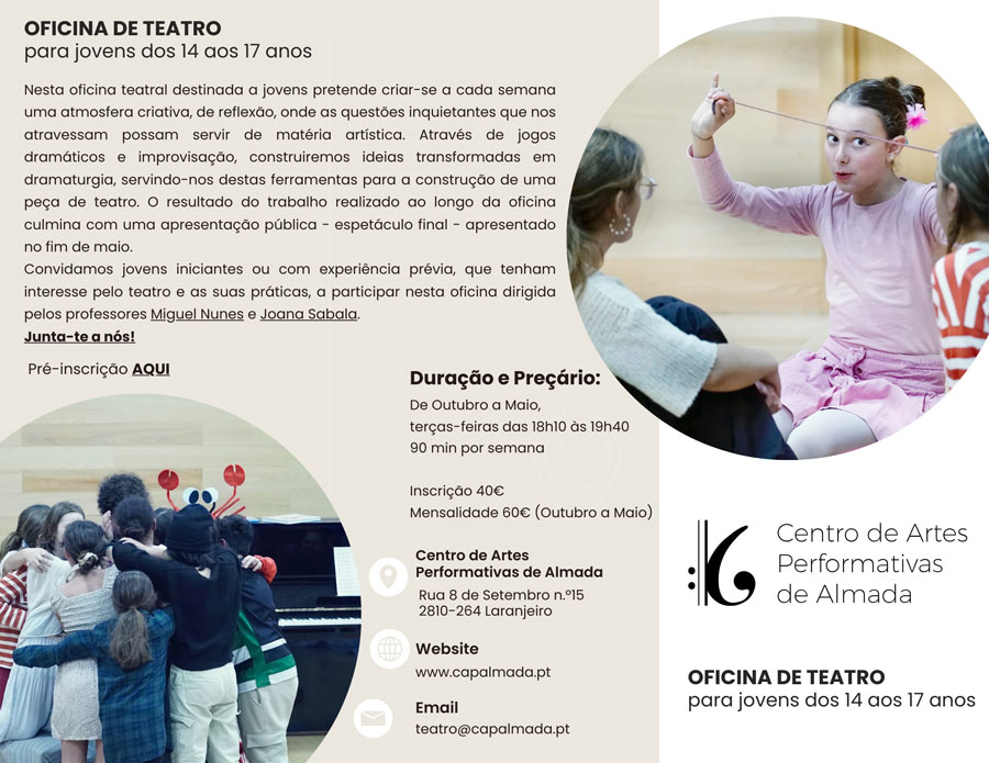 Inscrições em: https://capalmada.pt/pre-inscricao-teatro/