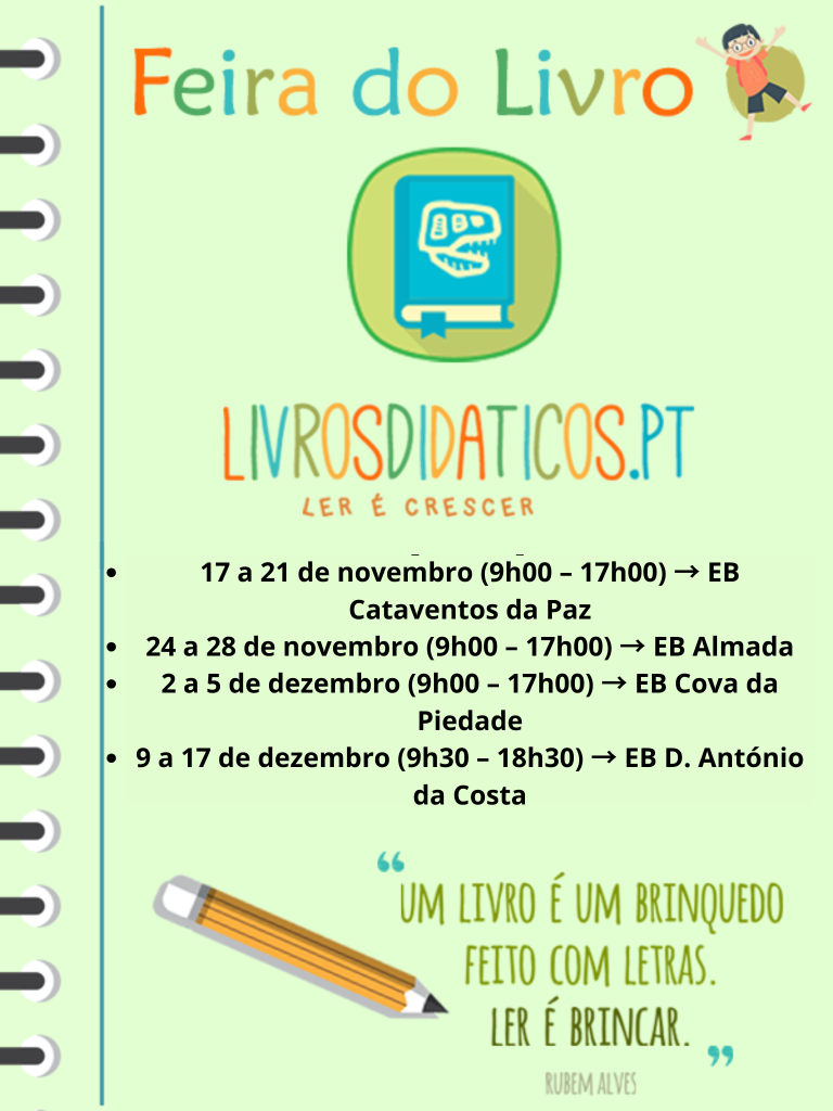 De 17 de novembro a 17 de dezembro, livros para todos os gostos e idades vão percorrer o nosso agrupamento, convidando alunos, famílias e professores a mergulhar no mundo da leitura — porque um livro é um brinquedo feito com letras… e ler é brincar!