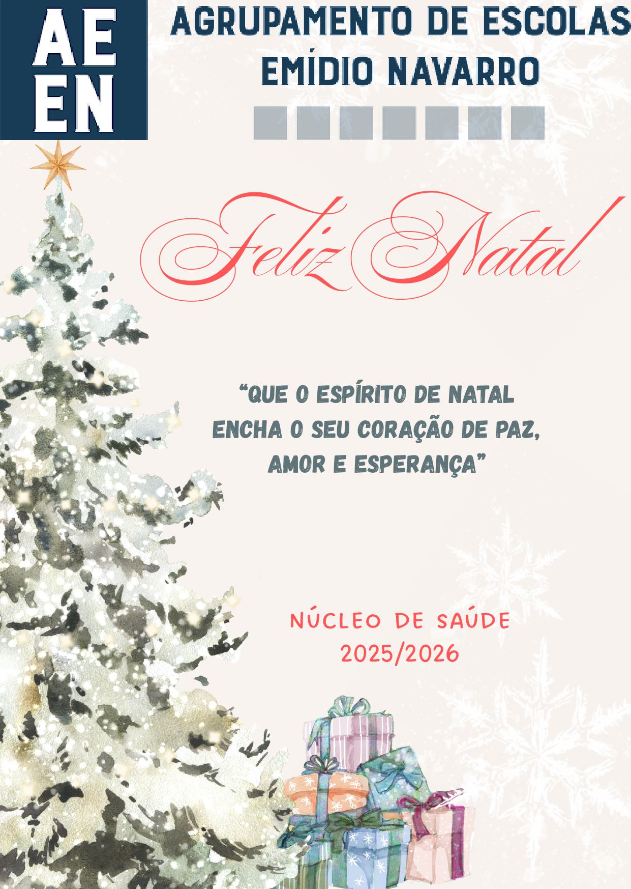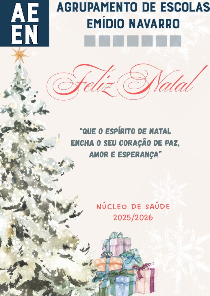 O Núcleo de Saúde do Agrupamento de Escolas Emídio Navarro deseja a todos os colaboradores, alunos e famílias um feliz Natal, repleto de Saúde, paz e momentos felizes. Que o novo ano traga consigo novas oportunidades de crescimento e bem-estar para todos.
