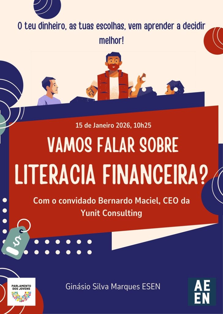 16 Jan 2026 Vamos falar sobre Literacia Financeira /Publicado porAEEN/Comentários0/TemasESEN, Literacia Financeira, Parlamento dos Jovens + Eventos/Acontecimentos, Parlamento Jovem